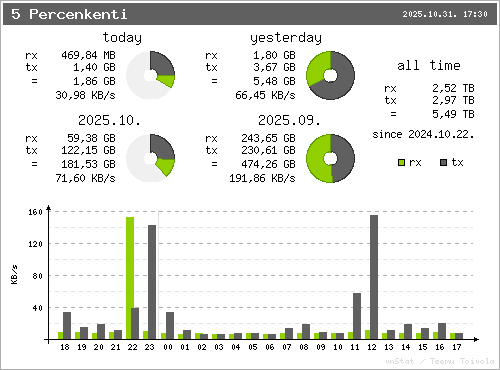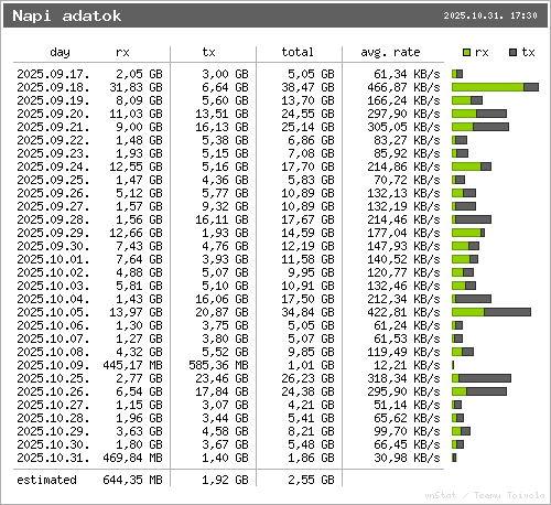 | */12 * * * * /usr/bin/vnstati -hs -o /var/www/pic/hour.png --headertext "Oranenti adatok" -v |  |